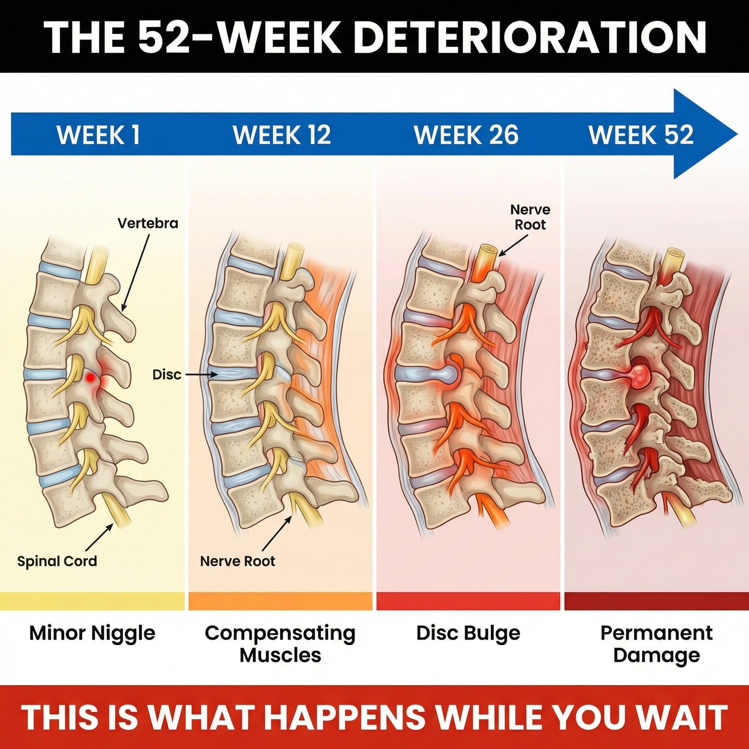 Paracetamol masks nerve signals but cannot create space between compressed vertebrae. You're numbing the alarm, not putting out the fire.