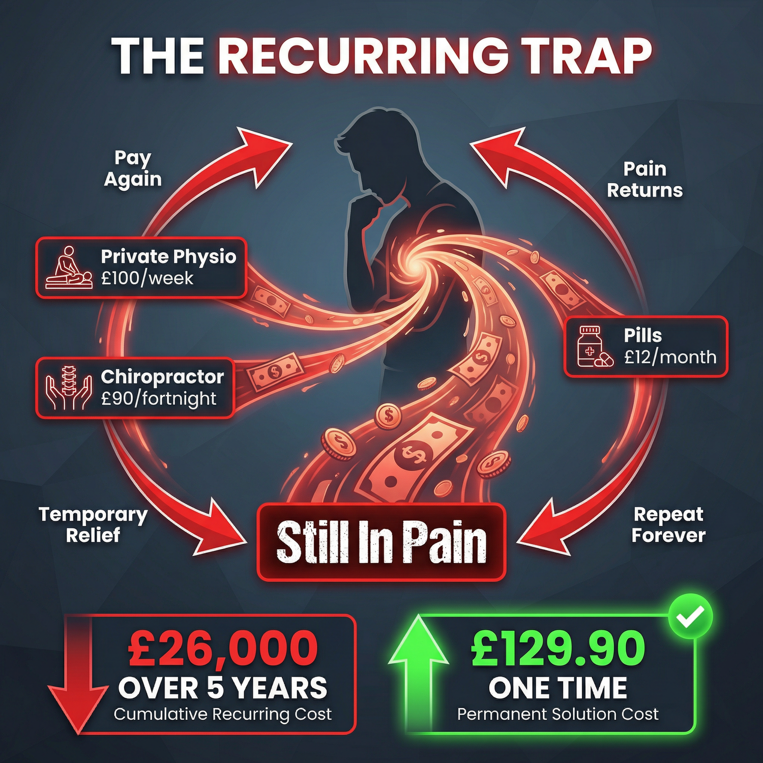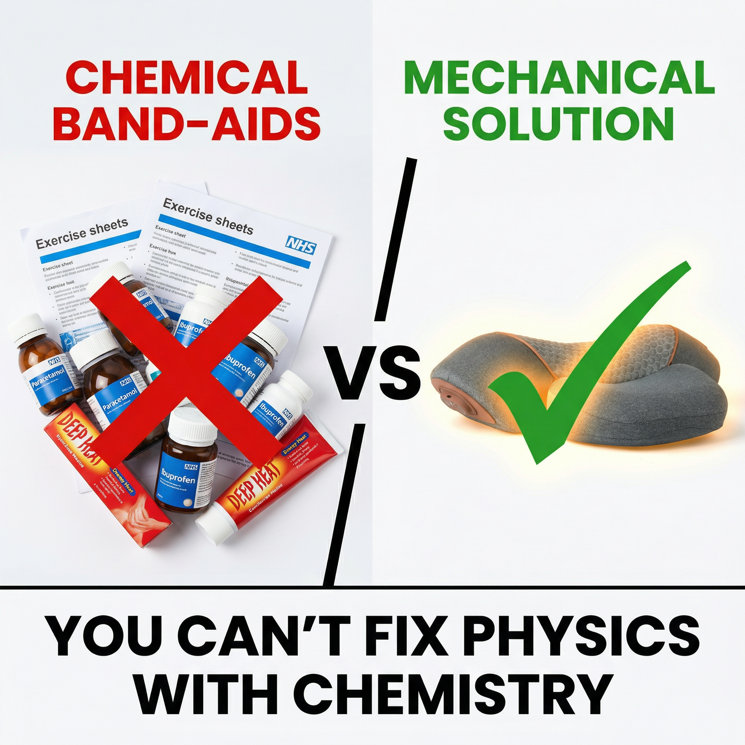The £38 vibrating massager that buzzed like machine guns and did nothing. The £45 foam roller that made things worse. Deep Heat that felt nice for 20 minutes. NHS exercises you couldn't do without screaming.