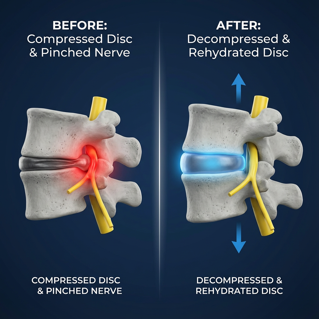Dynamic Traction: Gently stretches and separates your vertebrae, reducing nerve compression and creating space for discs to rehydrate.
